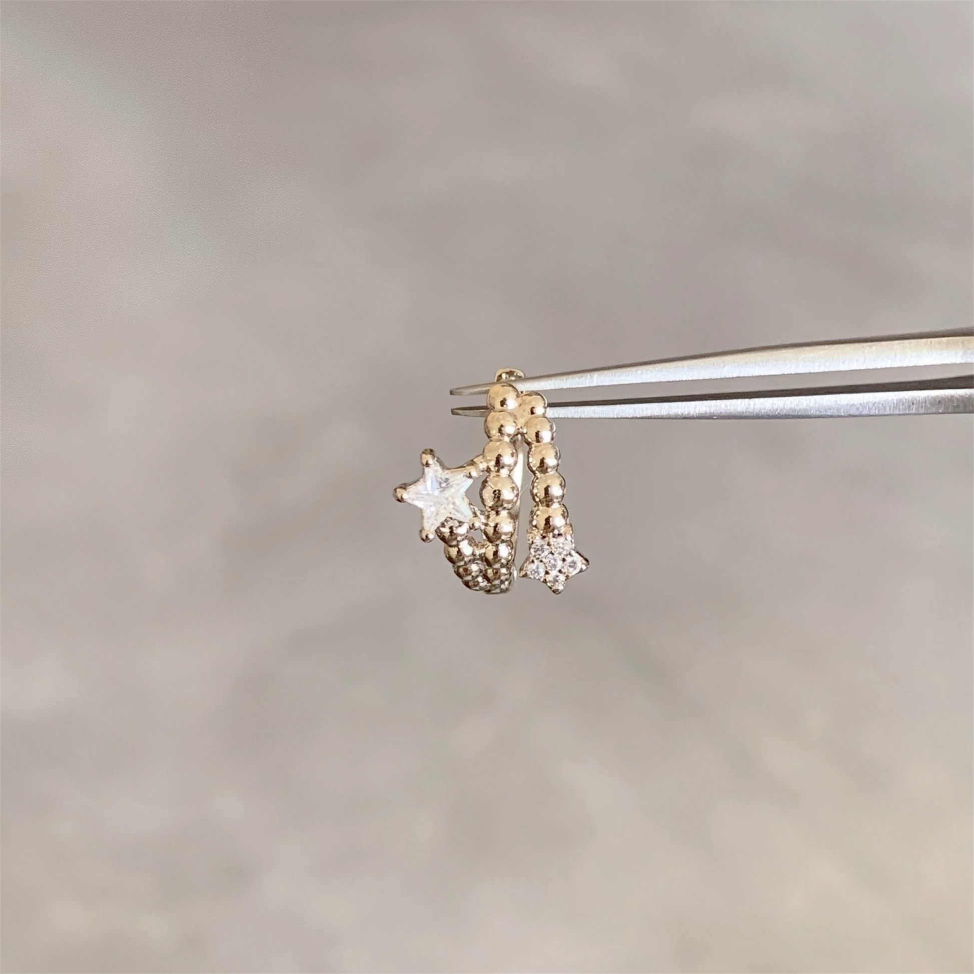 Gold Beaded Double Star Helix Hoop