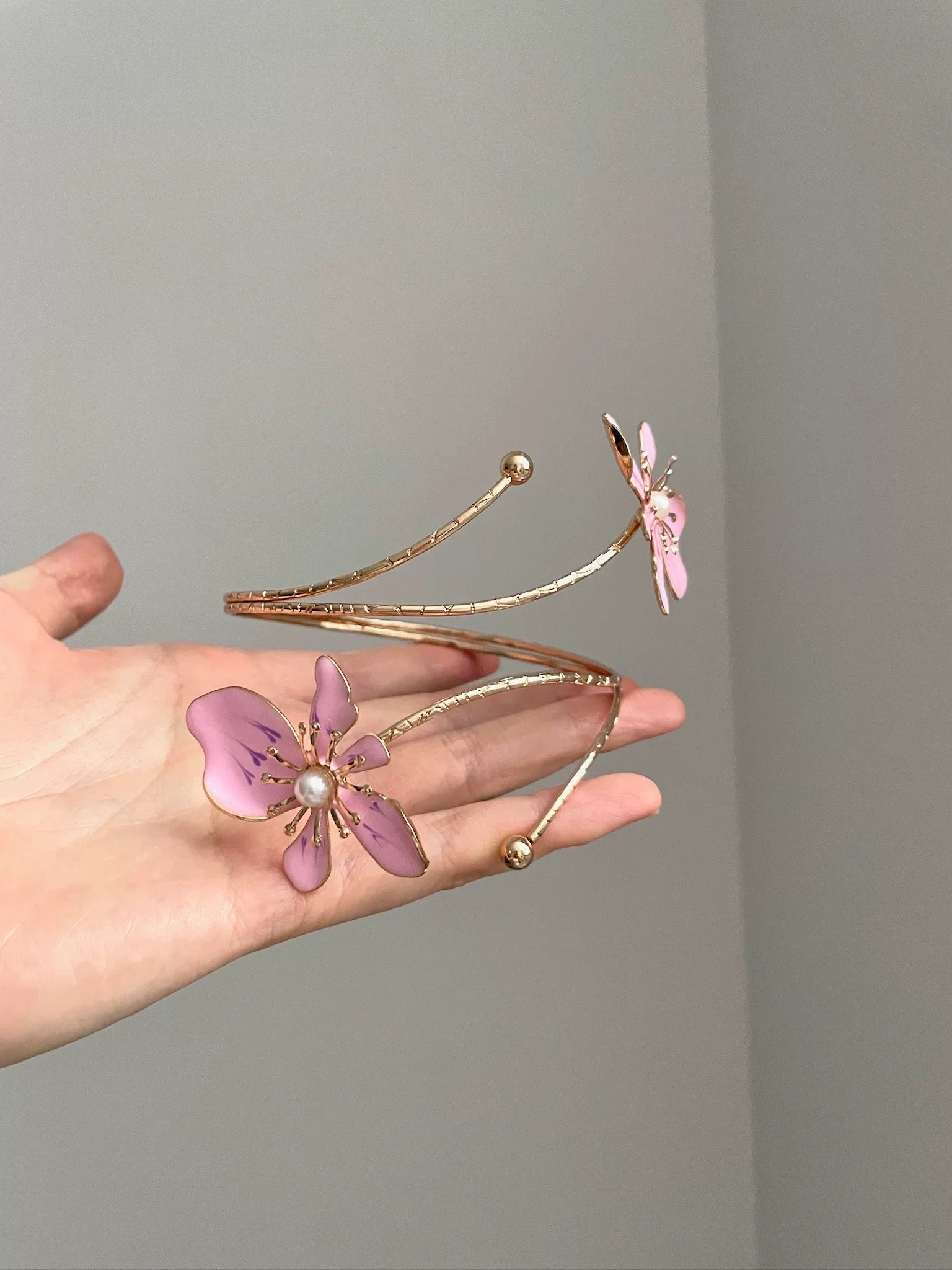 Gold Pink Flower Pearl Arm Puffs