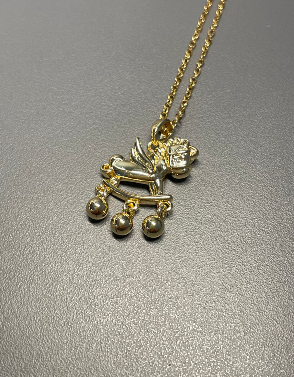 Gold Winged Rocking Horse Necklace