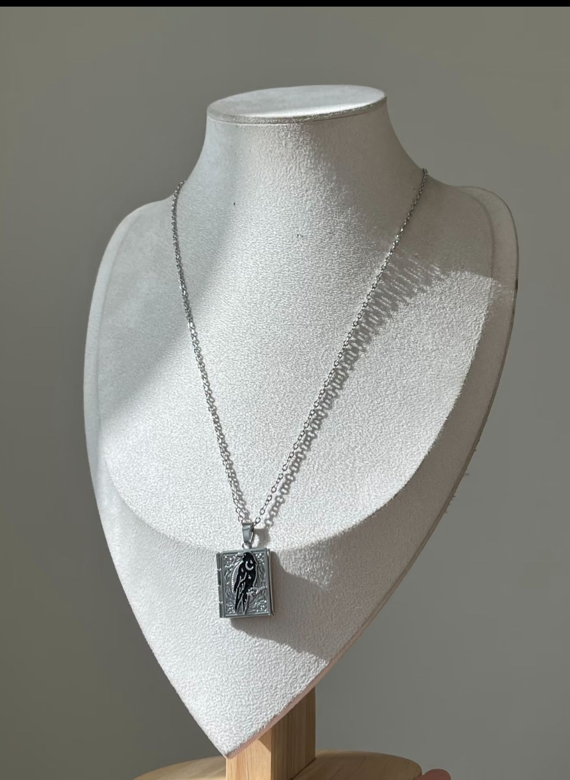 Gothic Raven Book Locket Necklace