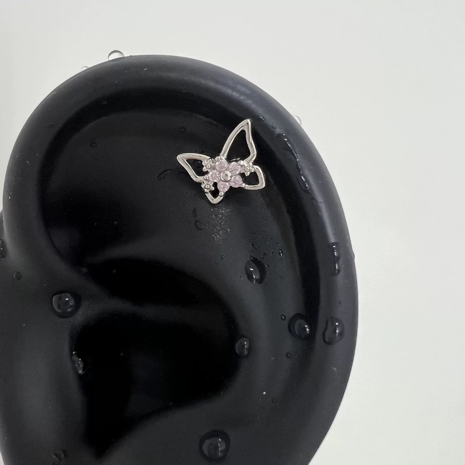 Silver Pink Butterfly Stud