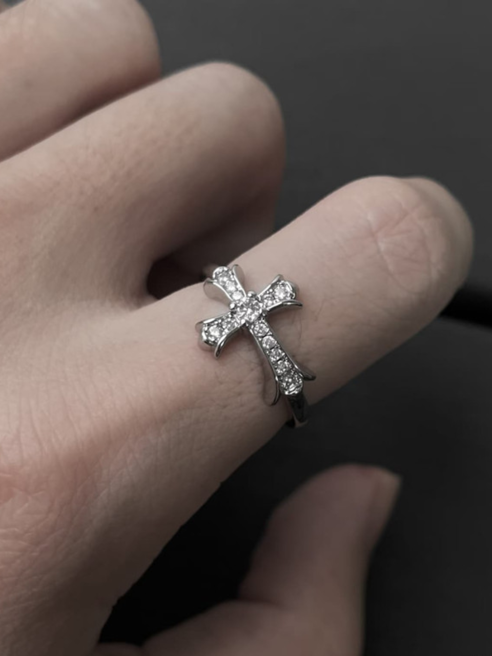 Sparkle Cross Center Open Ring